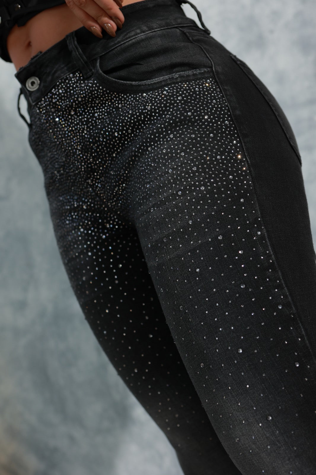 Bota campana, cristales decorativos, con bolsillos traseros,  elásticos.